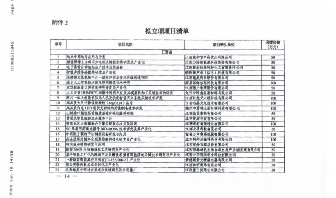 近日,省科技厅发布了《关于科技部“科技助力经济2020”重点专项拟立项项目的公示》,赣江新区共有3家企业项目予以立项。具体是哪些项目呢?一起来看看吧!